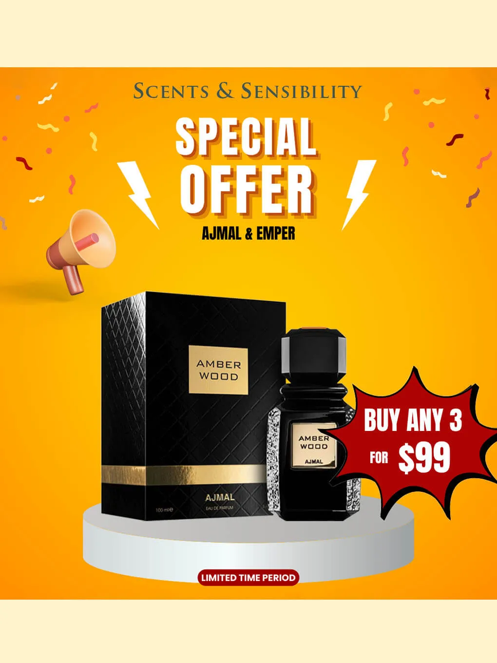 “$99 for Buy Any 3 Perfumes – Ajmal & Emper” on Scents & Sensibility.