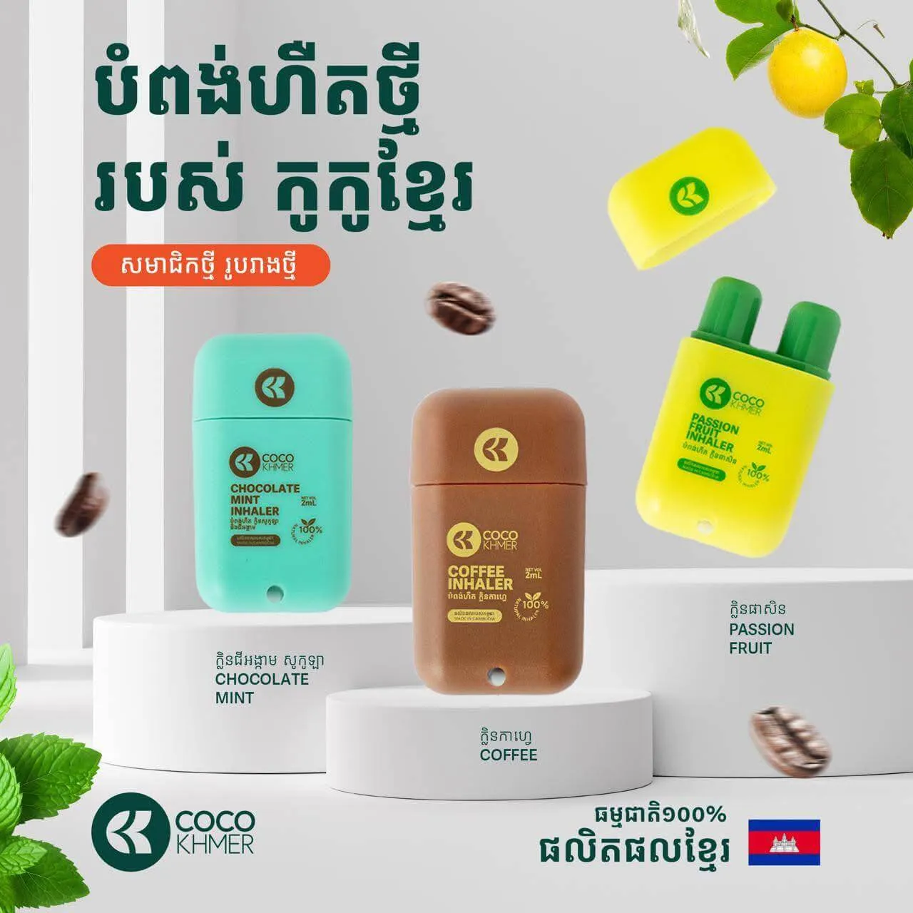 Awaken your mind and body with a natural boost of fresh Cambodian Coffee, Menthol, and Peppermint - anytime, anywhere.