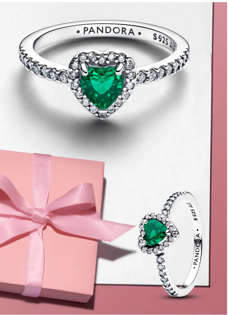 All heart, all sparkle. Our sterling silver ring features a raised man-made crystal heart in royal green with a pavé halo and half-pavé band. A perfectly stackable piece inspired by love.