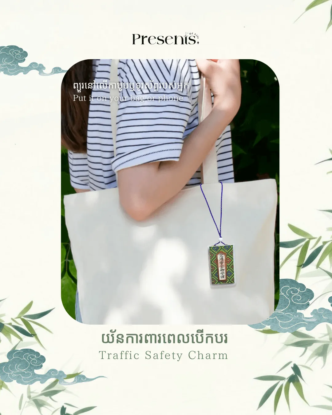 This traditional Japanese omamori is a protective charm made to keep you safe wherever you go. Carry it with you for peace of mind and gentle protection on all your journeys.