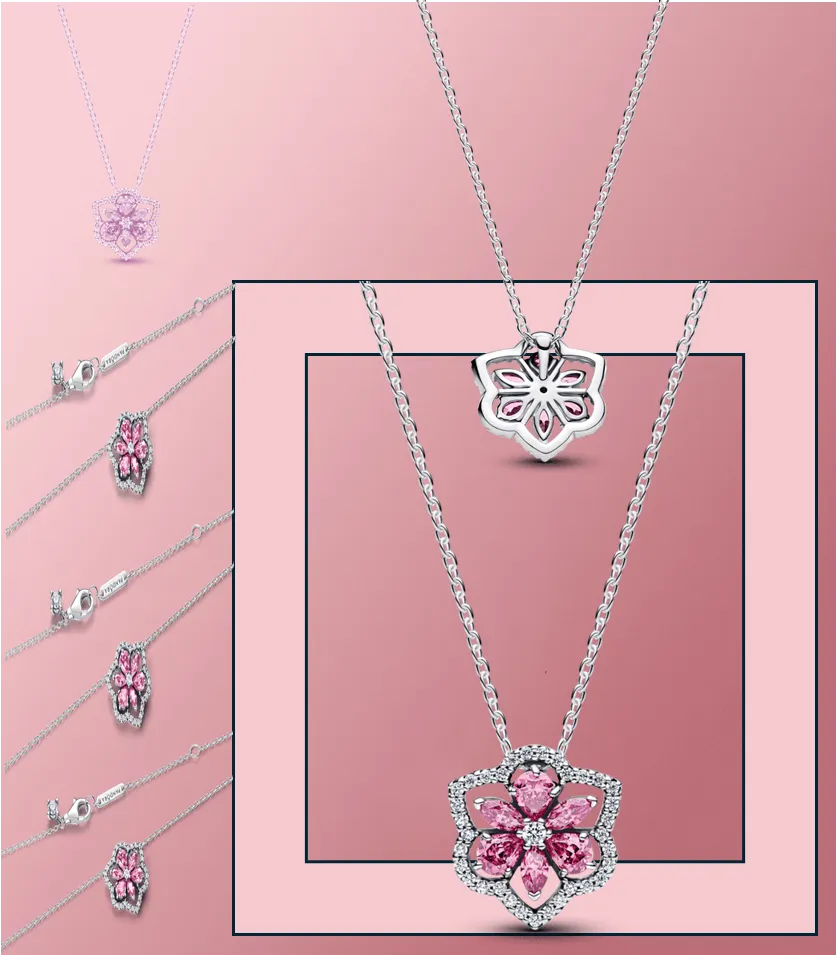 Herbarium Sparkling Pink Flower Pendant Necklace