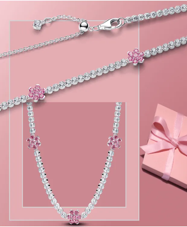 Pink Flower Tennis Necklace