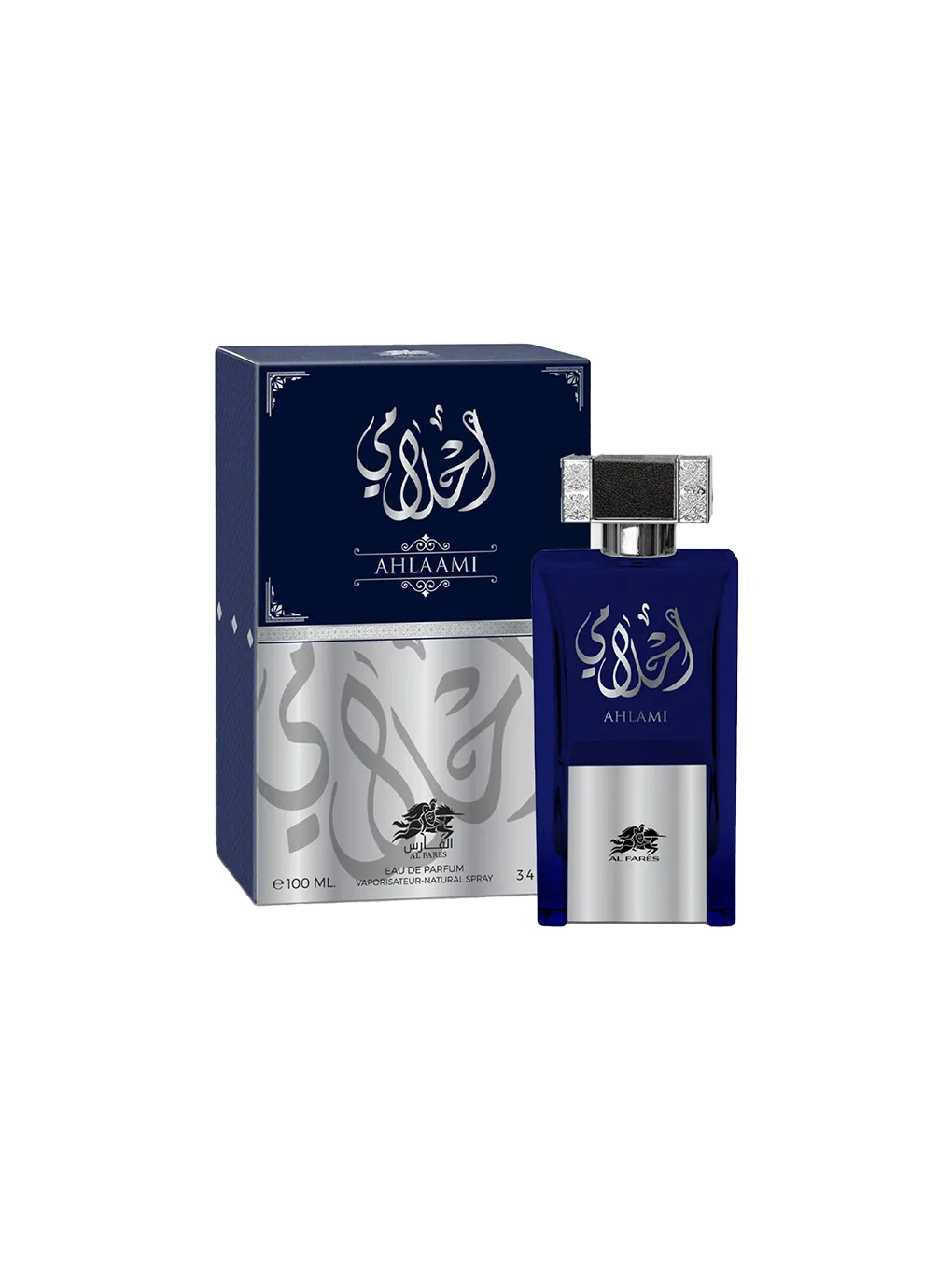 AL FARES AHLAAMI 80ML is a unisex fragrance featuring a unique blend of marine-citrus, pink grapefruit, cinnamon, exotic woods, and musky amber. It's known for its silky-smooth, floral musk with a woody undertone, designed to evoke a dreamy experience and guide the wearer to a state of bliss. This fragrance is suitable for both men and women and is available in an 80ml bottle.