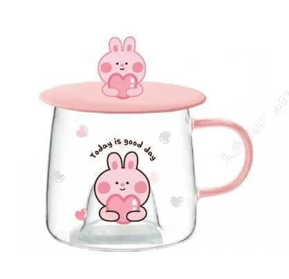 Cartoon Series High Borosilicate Glass Cup with Lid (300ml) (Rabbit)