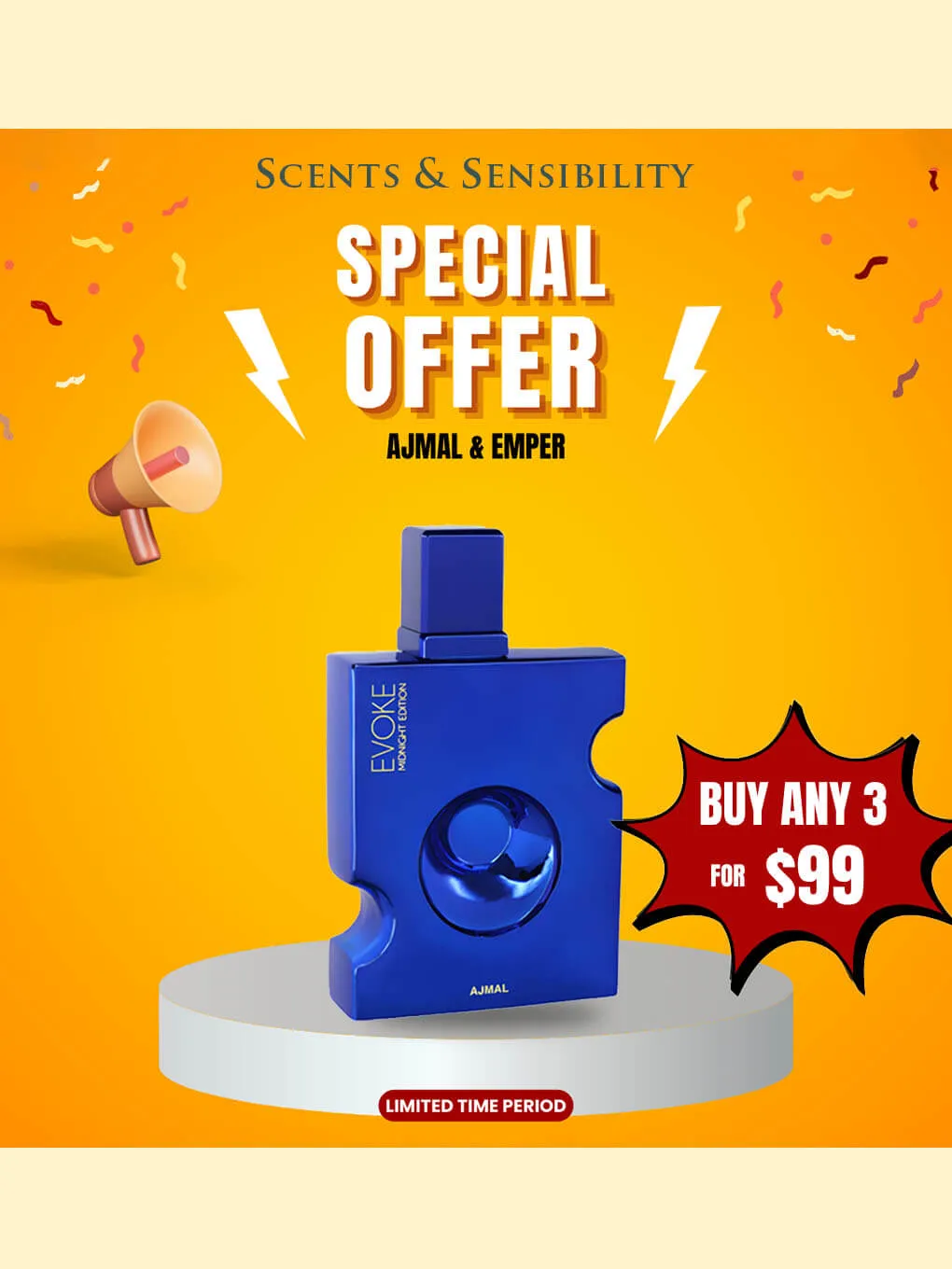 “$99 for Buy Any 3 Perfumes – Ajmal & Emper” on Scents & Sensibility.