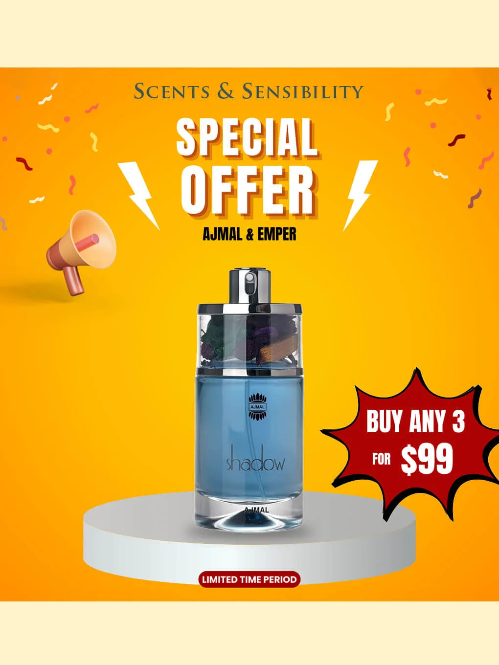 “$99 for Buy Any 3 Perfumes – Ajmal & Emper” on Scents & Sensibility.