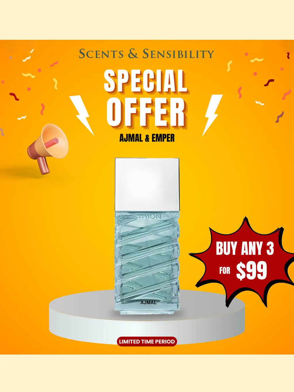 “$99 for Buy Any 3 Perfumes – Ajmal & Emper” on Scents & Sensibility.