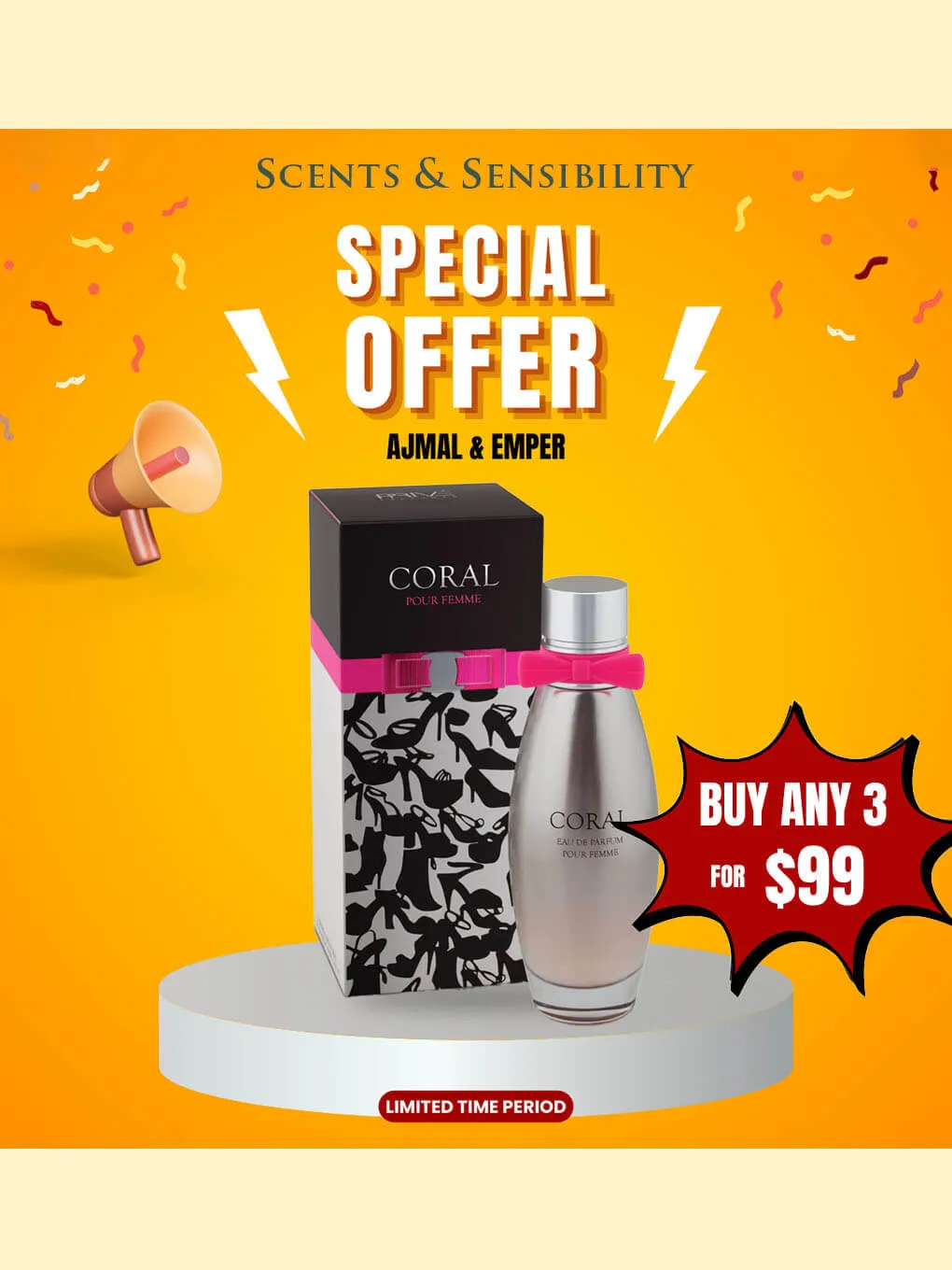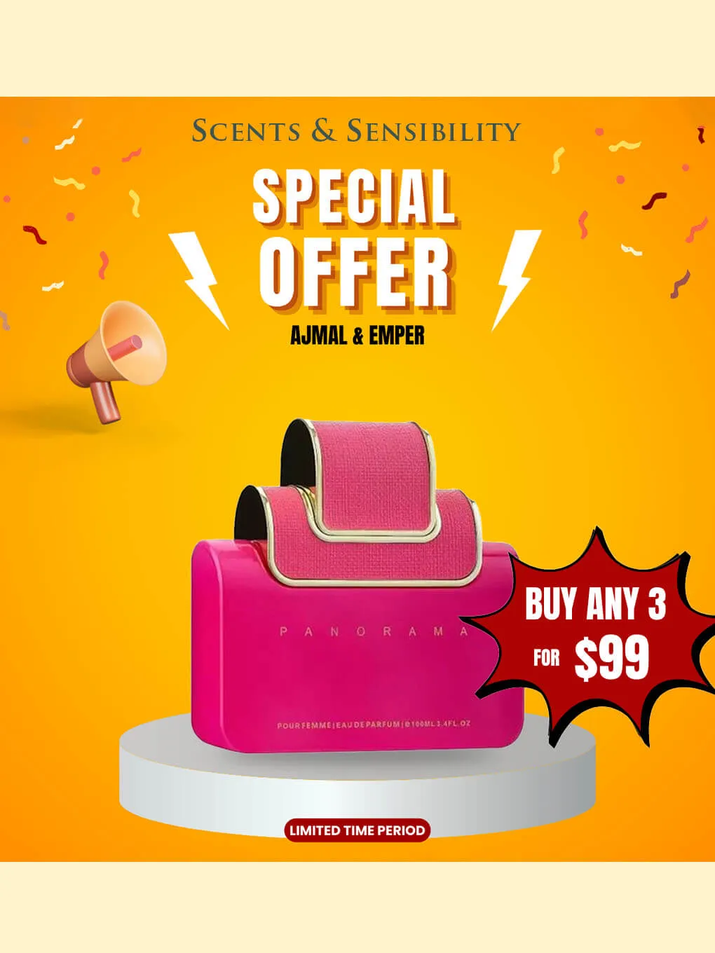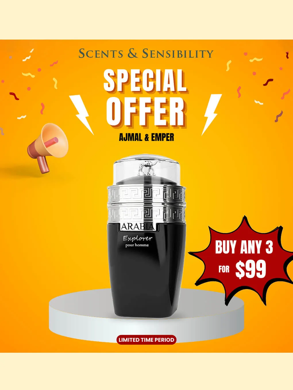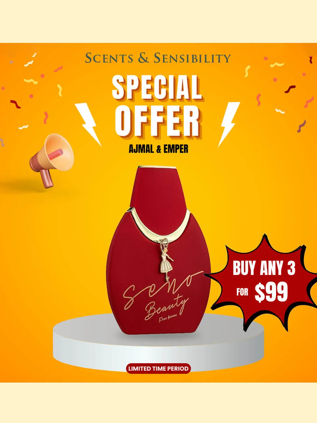 “$99 for Buy Any 3 Perfumes – Ajmal & Emper” on Scents & Sensibility.
