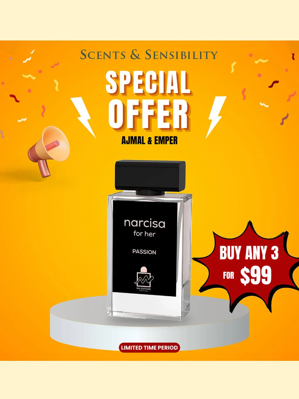 “$99 for Buy Any 3 Perfumes – Ajmal & Emper” on Scents & Sensibility.