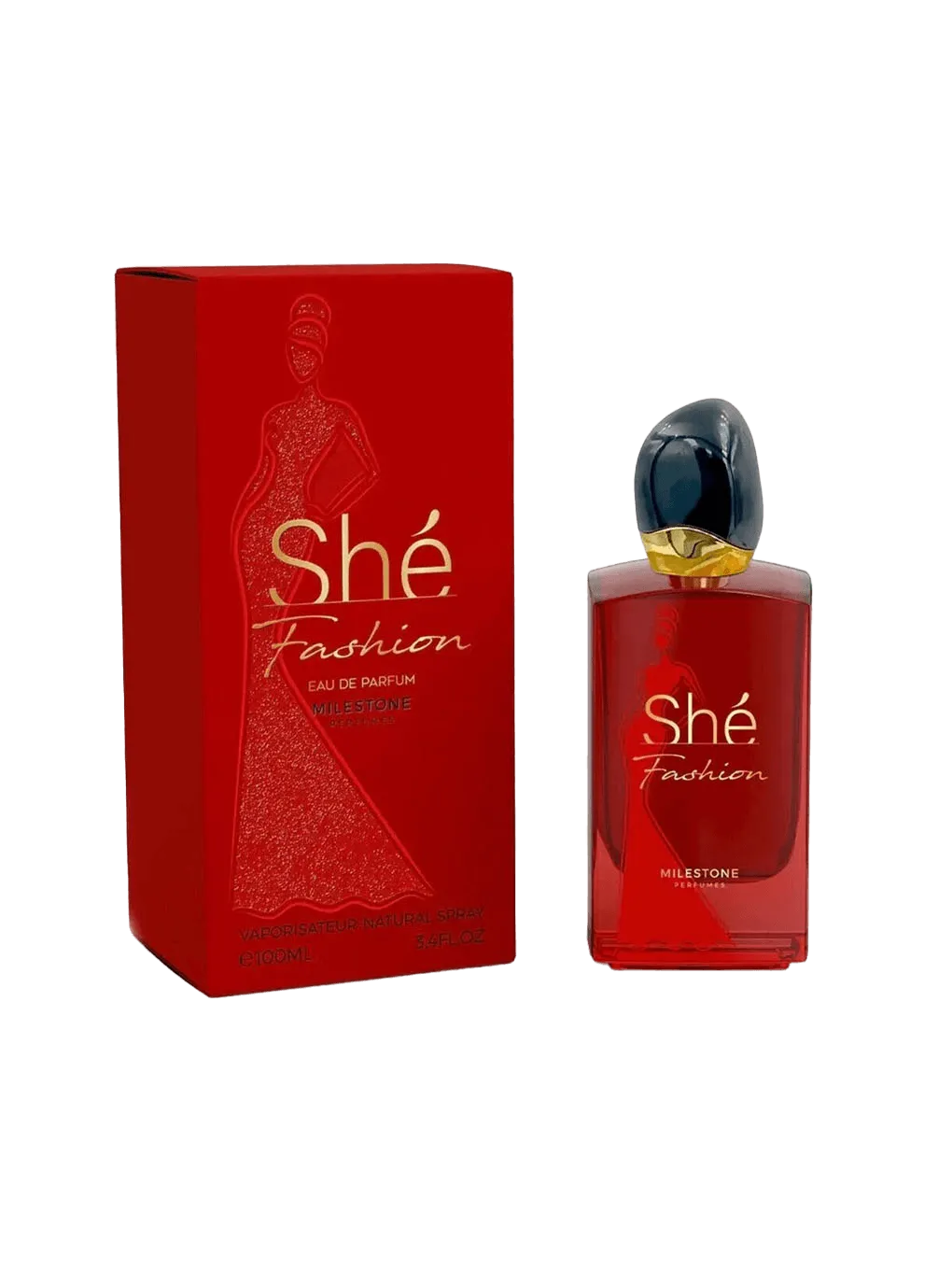 EMPER MILESTONE SHE FASHION is a 100ml EAU de Parfum for women, known for its modern and dynamic fragrance profile. It combines elegance with vibrant energy through a layered scent experience.