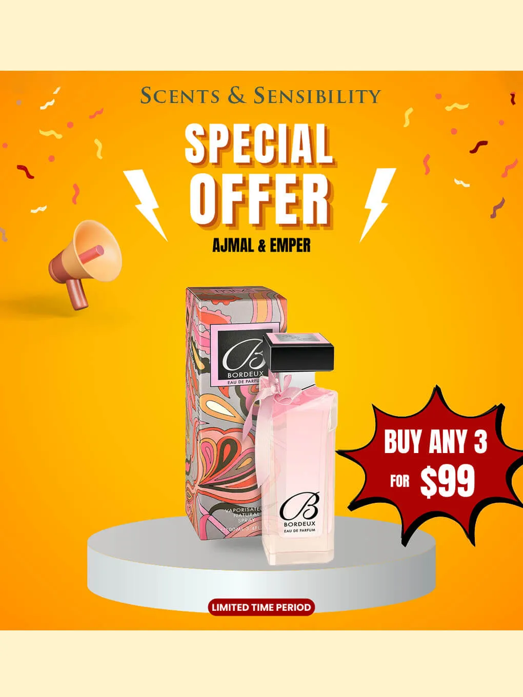 “$99 for Buy Any 3 Perfumes – Ajmal & Emper” on Scents & Sensibility.