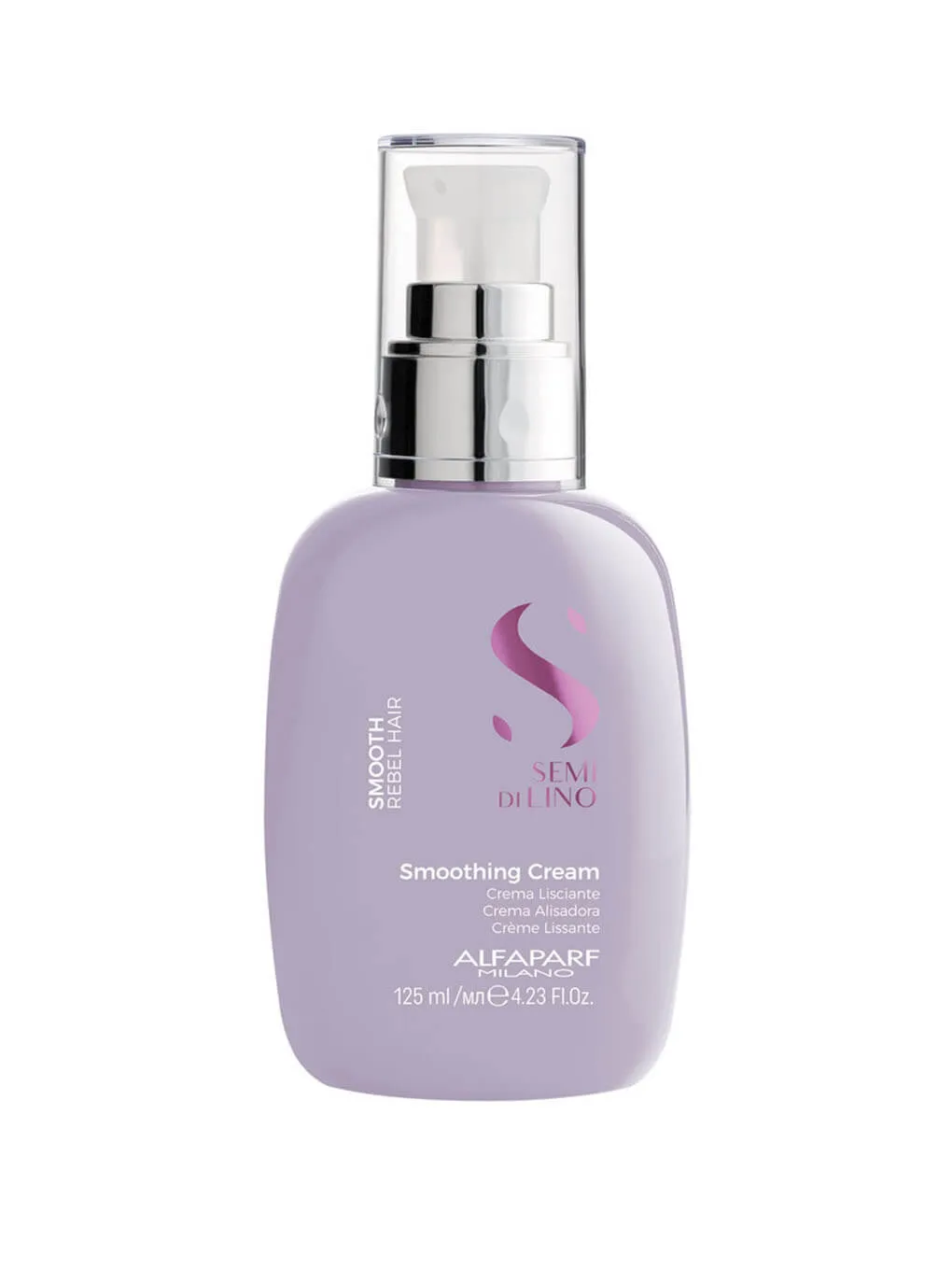 Alfaparf SDL Smooth Smoothing Cream 125ml is a leave-in cream that tames frizzy, unruly hair by hydrating, smoothing, and aligning fibers for long-lasting, frizz-free results, while protecting from heat and humidity with Urban Defence Pro and Climate-Proof tech for manageable, soft, shiny hair, ideal for use with heat styling.