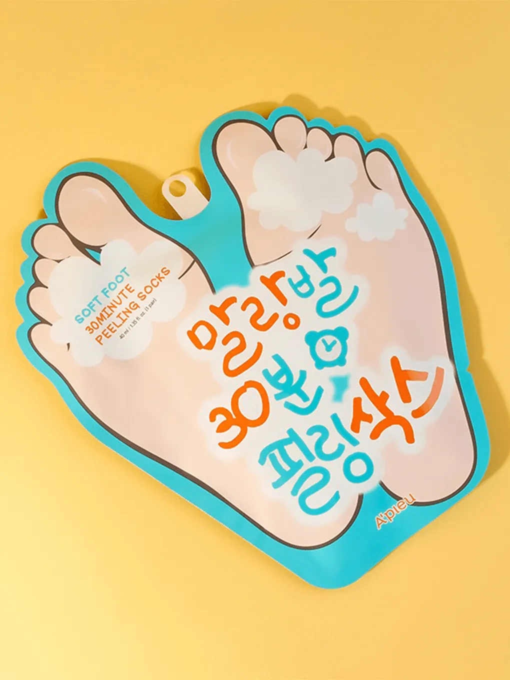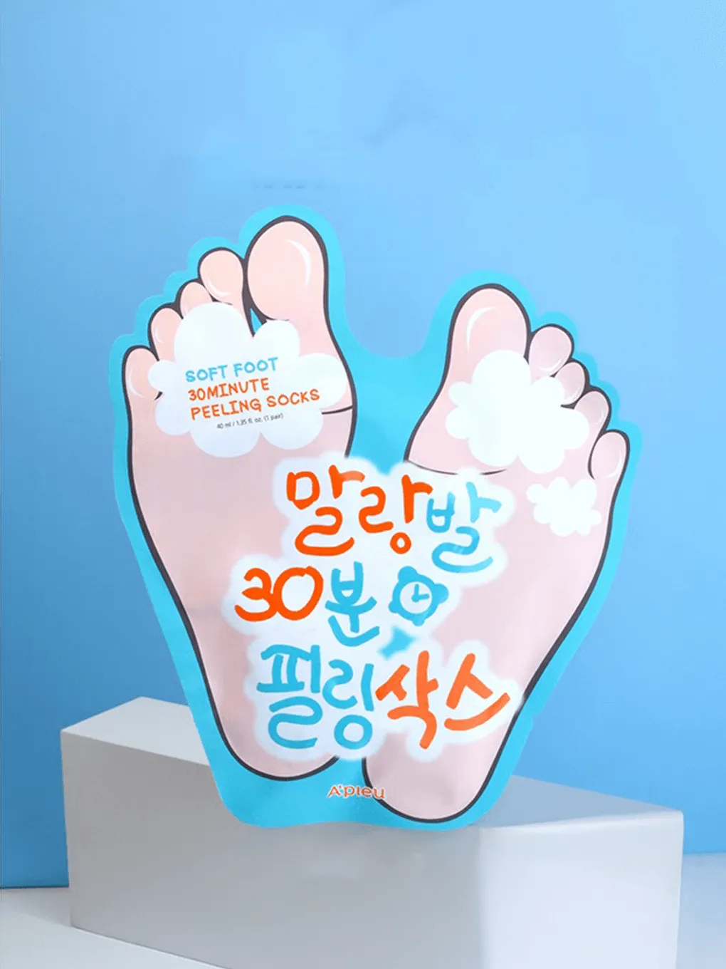 A’PIEU SOFT FOOT 30‑Minute Peeling Socks are intensive foot treatment socks that help gently exfoliate and remove rough, dead skin, leaving feet feeling soft and smooth with just one treatment.