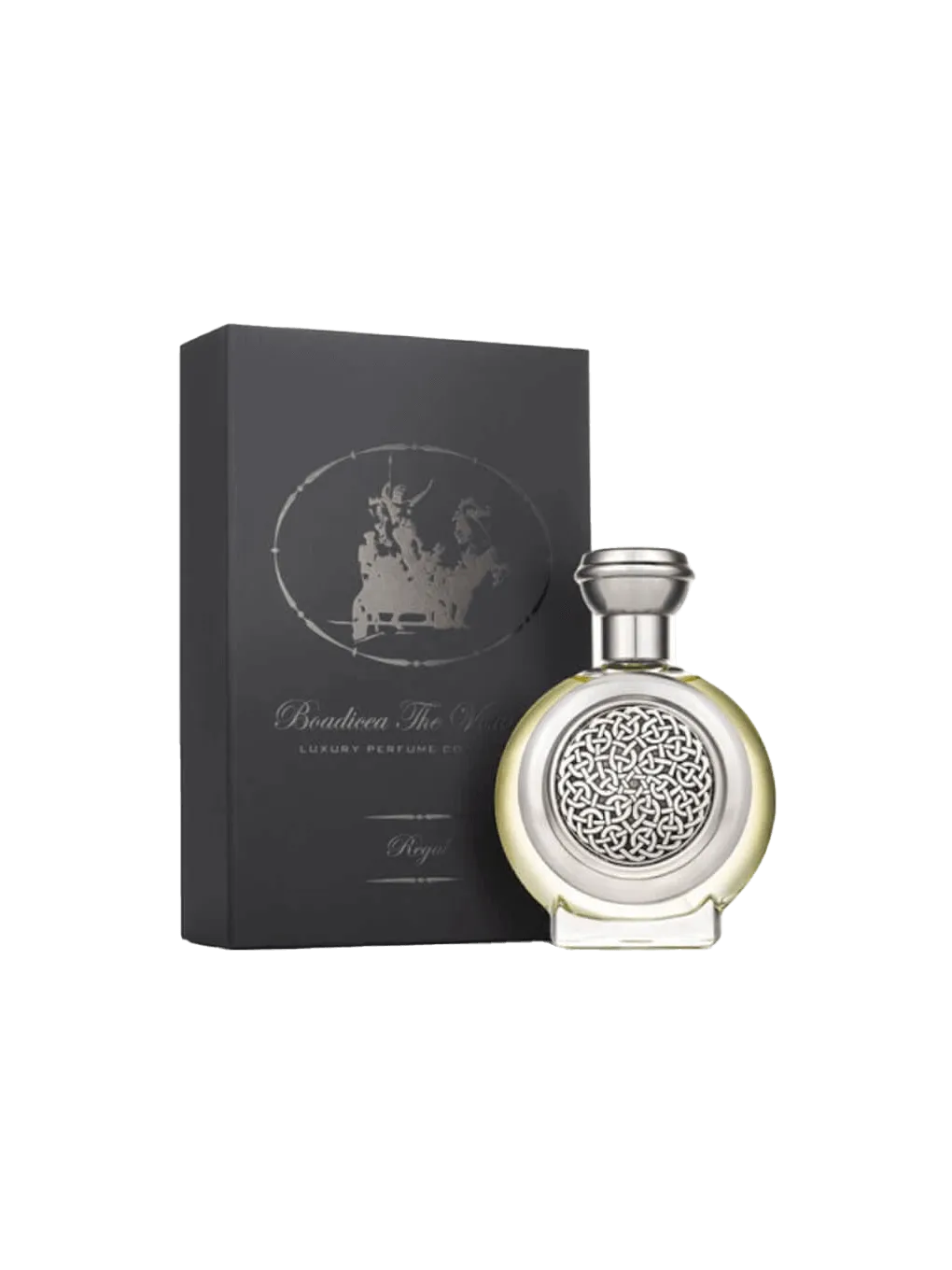 Boadicea the Victorious Regal (100ml Eau de Parfum) is a unisex, luxurious oriental floral fragrance launched in 2010. It is described as a commanding, sophisticated, and seductive scent designed to make a strong, long-lasting impression. The fragrance is characterized by a "rose-oud-saffron" combination that is both, fresh, and slightly animalic.