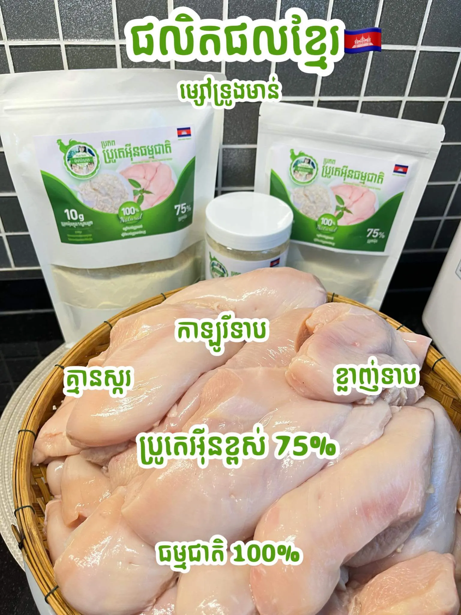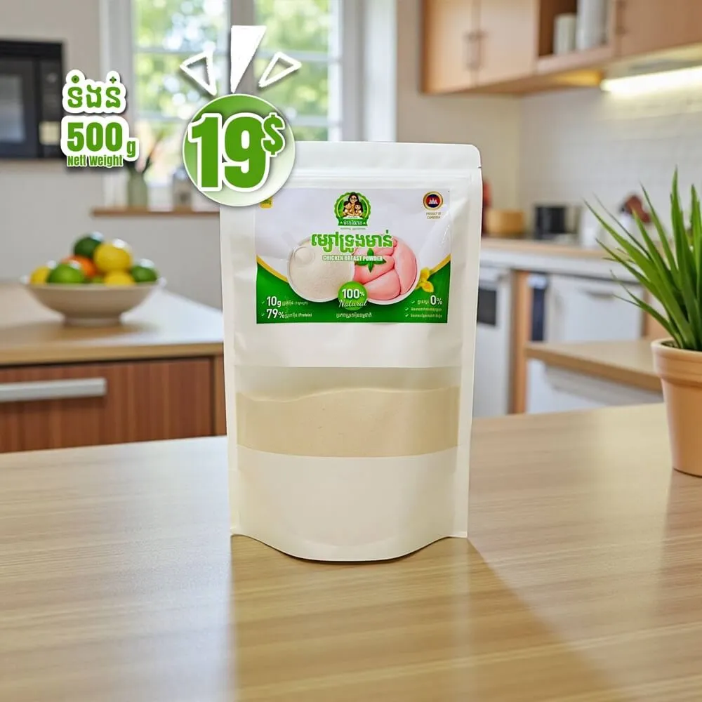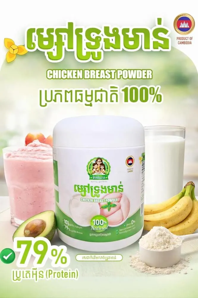 Fuel your workout and weight loss goals with clean, natural protein made from real chicken breast. Our Cambodian chicken breast powder delivers 79% protein, perfect for muscle recovery, fat loss, and healthy meals with no sugar or preservatives.