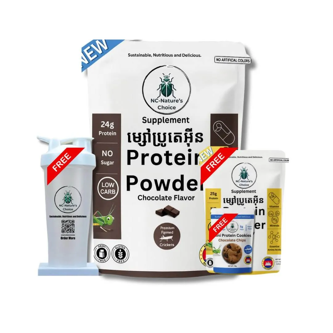 Discover the future of nutrition with Nature's Choice! Our Ento-Vegan Protein Powder, crafted from farm crickets and isolated soy protein, is a sustainable and easy-to-digest option for health enthusiasts. This innovative blend is packed with proteins, vitamins, and essential nutrients, making it a healthy choice for human consumption. Perfect for those who value sustainability and high-quality nutrition. Try this ento-vegan protein powder today and fuel your body the eco-friendly way.