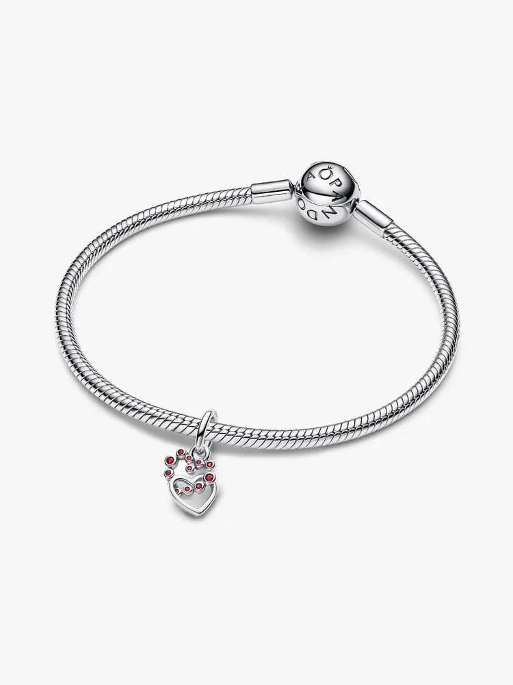 A symbol of connection and love. This sterling silver dangle features salsa red crystals set in a heart shape, with a second heart that moves freely to catch the light beautifully.