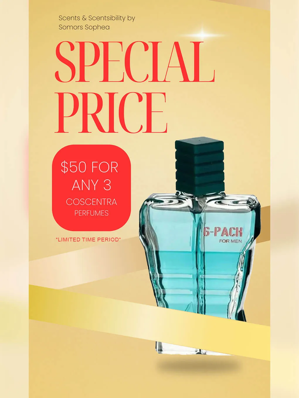 COSCENTRA 6-PACK FOR MEN EDT 100ML ($50 FOR ANY 3 COSCENTRA PERFUMES)