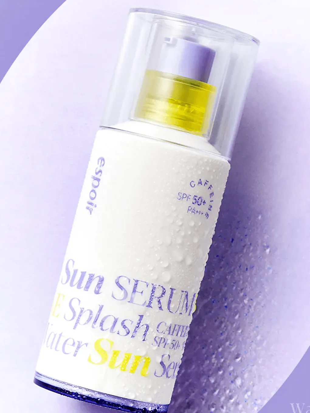 Espoir Water Splash Sun Serum is a lightweight SPF 50+ sunscreen with a serum-like texture that absorbs quickly, hydrates the skin, and leaves a fresh, dewy finish without feeling greasy.