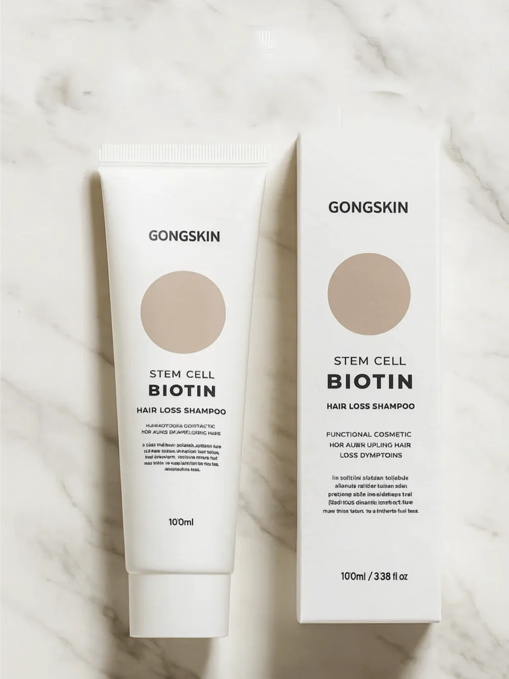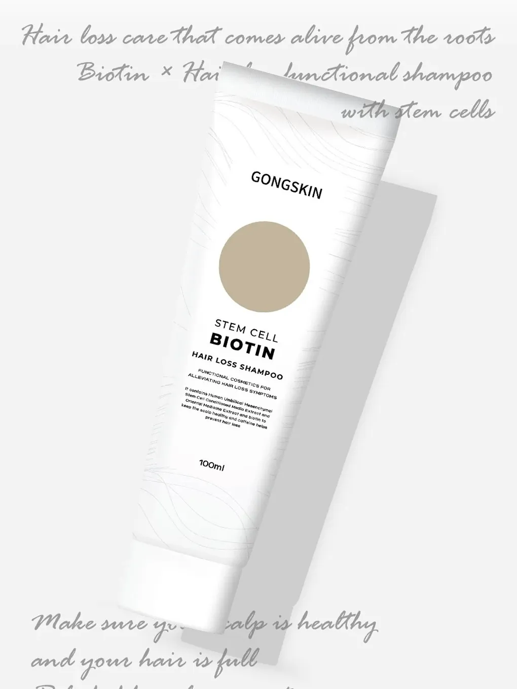 Gongskin Stem Cell Biotin Hair Loss Shampoo 100 ml is a gentle cleansing shampoo formulated with biotin and stem cell‑derived ingredients to help strengthen hair, reduce breakage, and support healthier, fuller‑looking hair while refreshing the scalp.