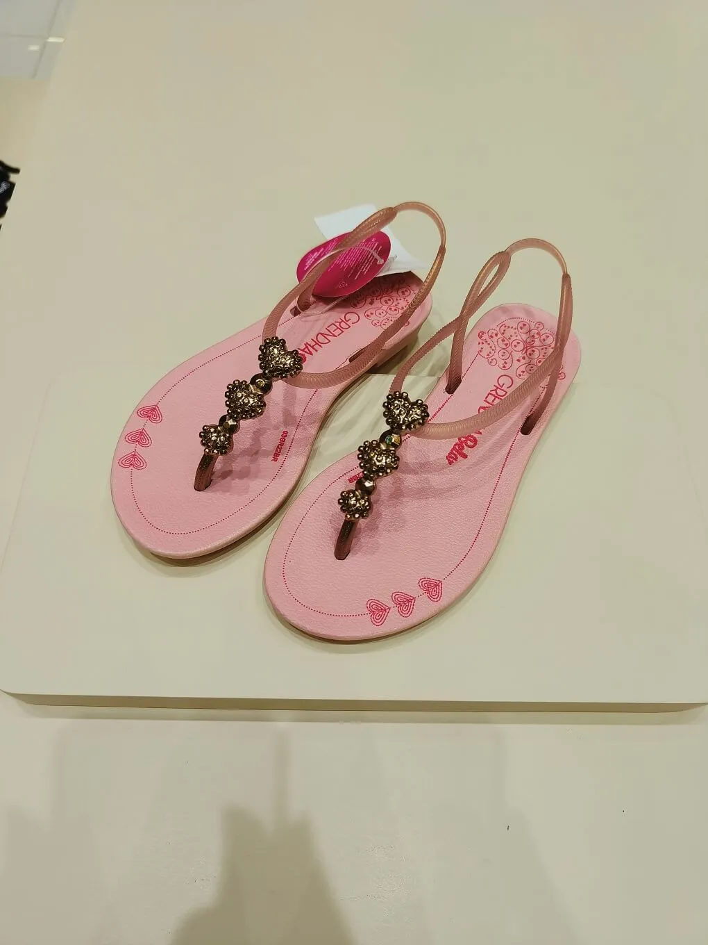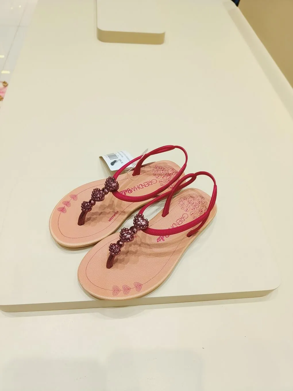 ស្បែកជើងក្រវ៉ាត់ ផ្ទាត់របស់ក្មេងស្រីដែលមានការរចនាដ៏ស្រស់ស្អាត មាន៣ពណ៏ ផលិតចេញពីជ័រទន់ហើយស្វិតធន់មាំល្អទប់លំនឹងបានល្អមិនរអិលជាប្រភេទជ័រPVCរបស់ប្រទេសប្រេស៊ីល។អាចពាក់ប្រើប្រាស់បានគ្រប់ពេលវេលាគ្រប់ទីកន្លែង។