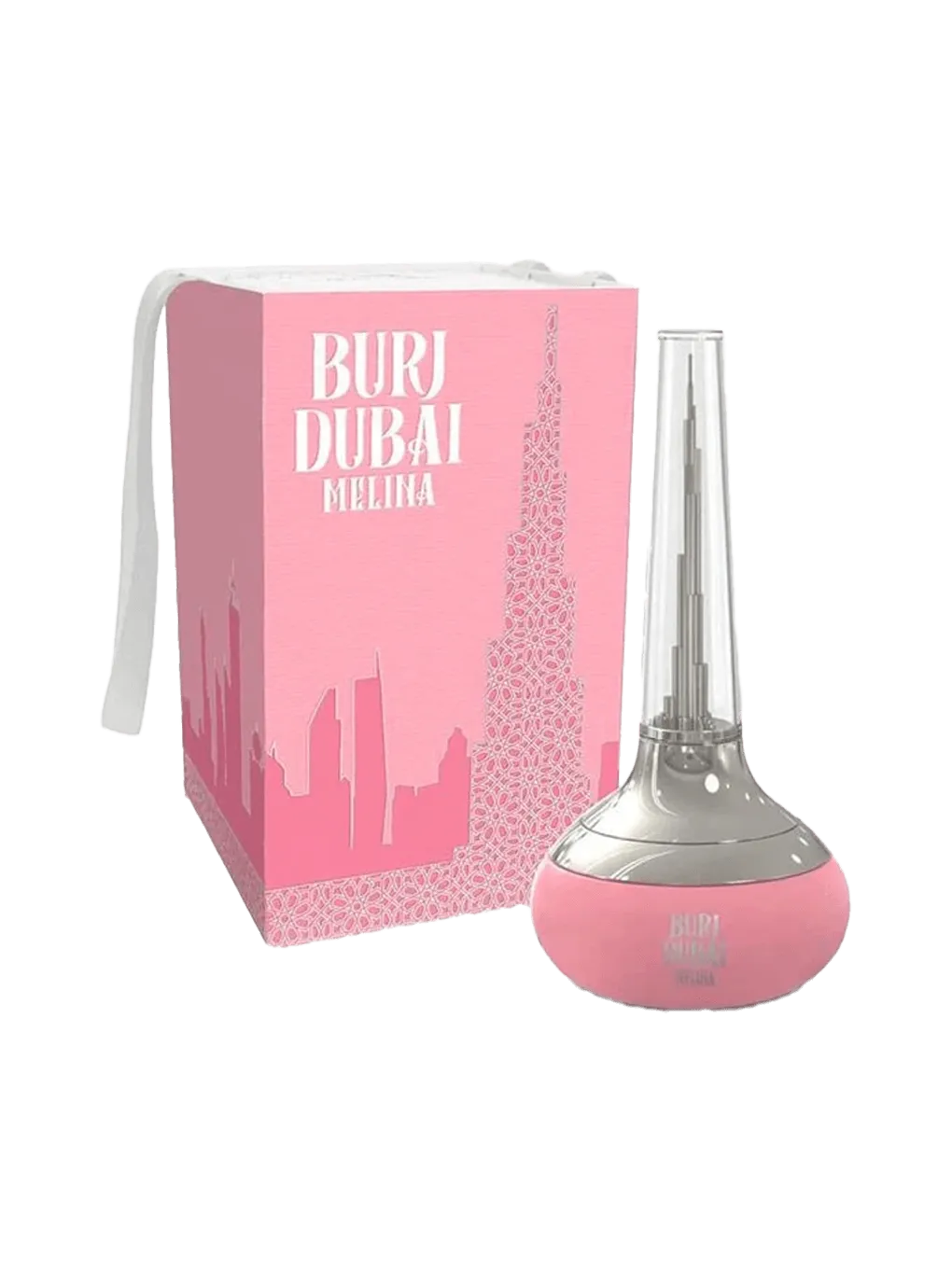 Le Chameau Burj Dubai Melina (100ml EDP) is a luxurious, feminine Oriental Floral fragrance launched in 2023, featuring a blend of sweet, powdery, and woody notes. This fragrance is designed for women, offering a sophisticated and "magnetic presence". It is often described as a, and a "pure and delicate" eau de parfum.