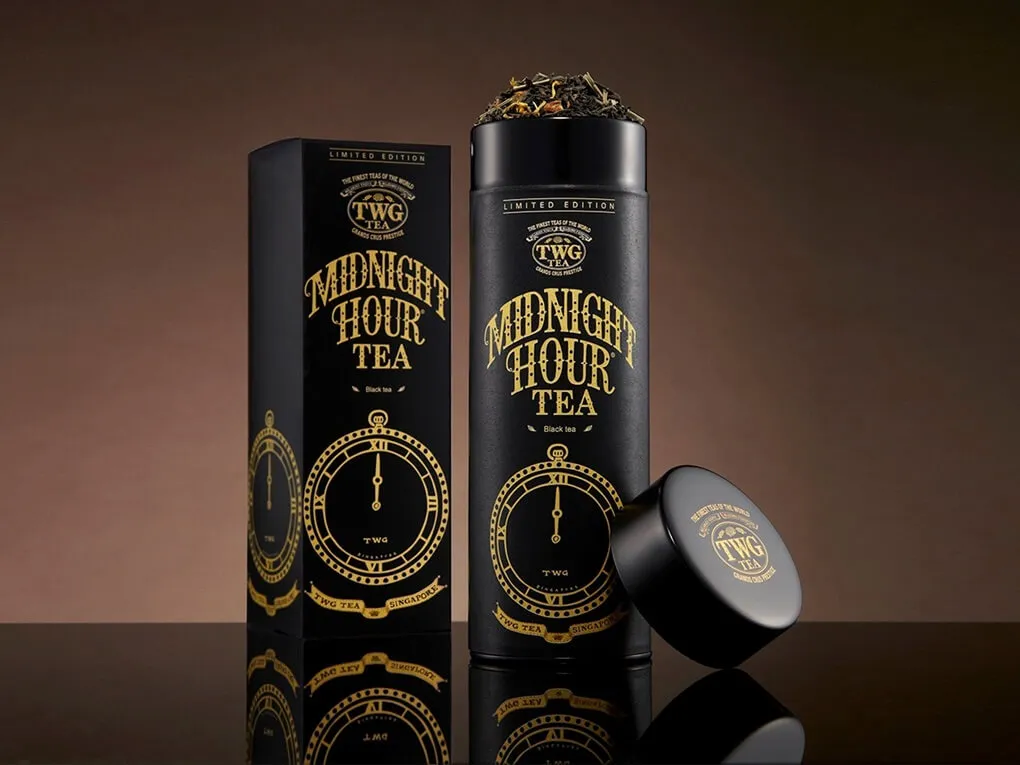 "As the clock chimes midnight, this tea unfurls a magical infusion of decaffeinated black tea delicately blended with fragrant tropical fruits. A tea to transform and renew.