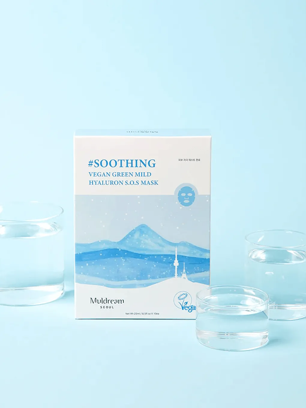 MULDREAM Vegan Green Mild Hyaluron S.O.S Mask is a soothing sheet mask enriched with hyaluronic acid and calming green botanical extracts to deliver deep hydration and comfort to dry or sensitive skin. Its gentle, vegan formula helps replenish moisture and leave skin feeling soft, refreshed, and balanced.
