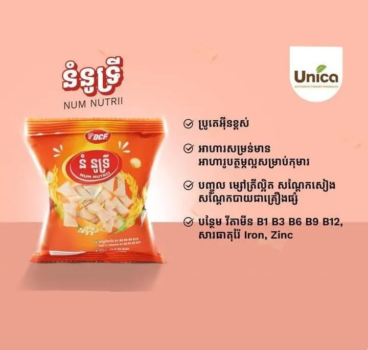 Num Nutrii is a nutritious fish-based snack made from quality ingredients, easy to eat and delicious. It is rich in essential vitamins B1, B3, B6, B9, B12 and minerals such as Iron and Zinc, helping support energy, growth, and overall health. Perfect for a convenient and healthy snack.