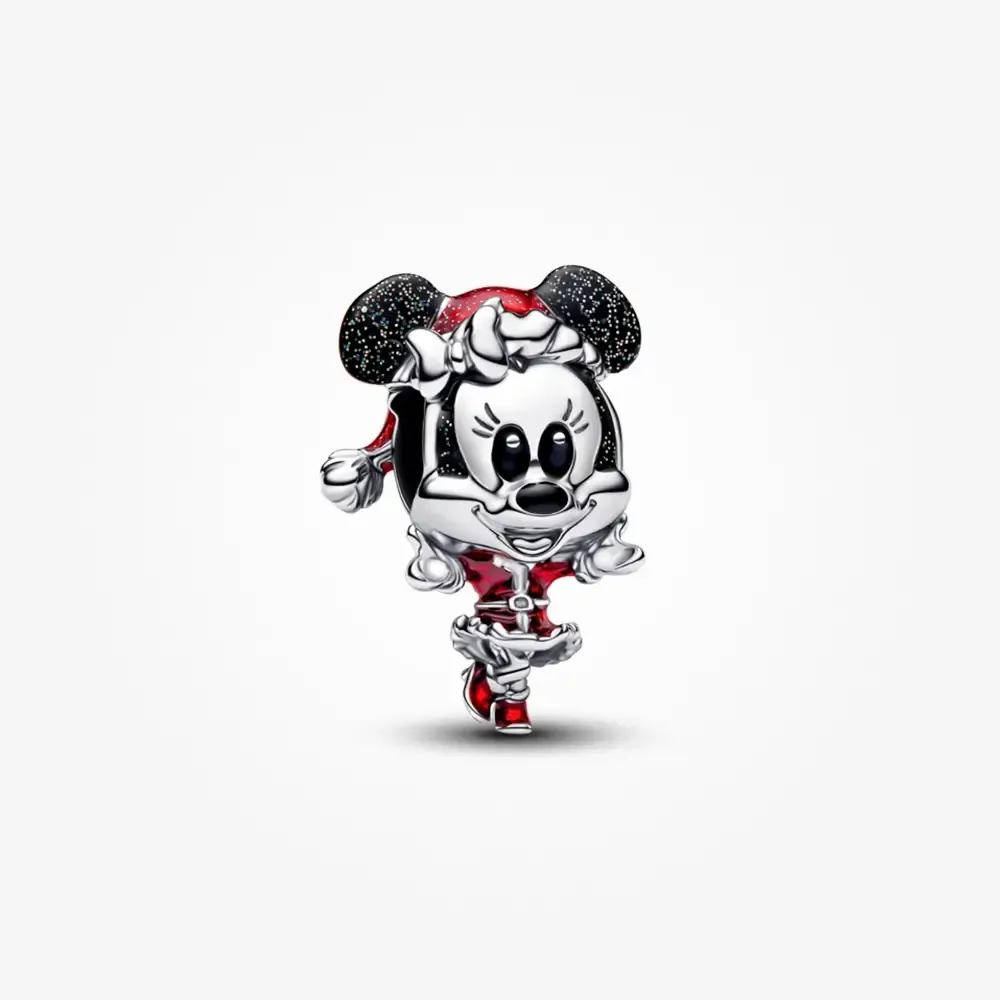 Disney's Minnie Mouse sparkles with festive charm. Crafted in sterling silver and featuring vibrant enamel detailing, her Santa hat and holiday outfit radiate warmth, joy and the magic of the season.
