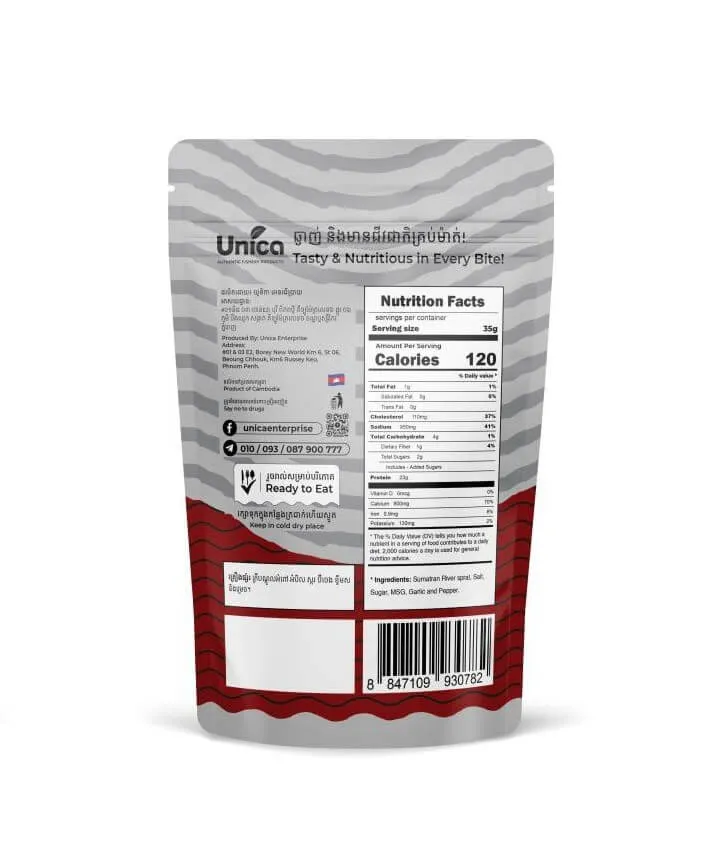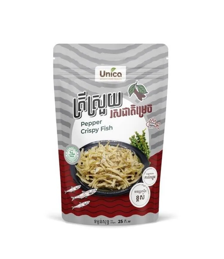 Enjoy the bold flavor of Pepper Crispy Fish, made from premium Sumatra River sprat and infused with black pepper and spices. This nutritious snack, rich in protein, offers a deliciously healthy and flavorful experience.