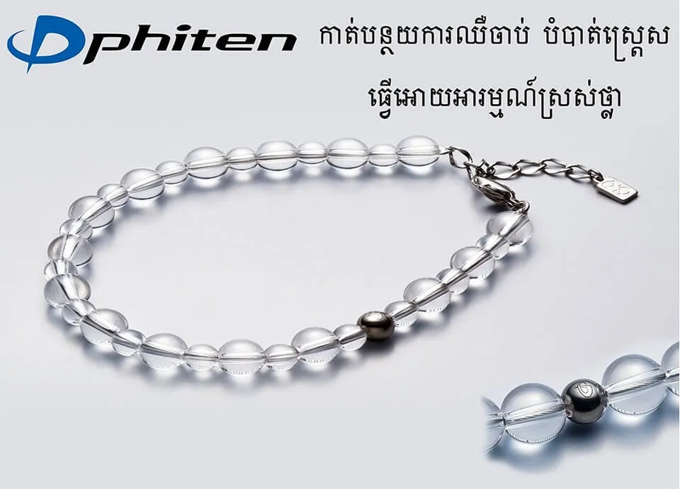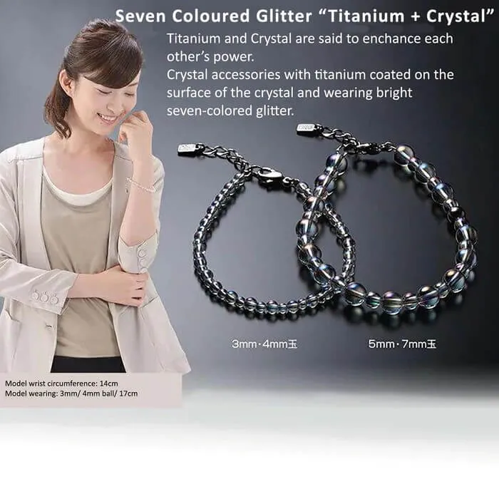 "Carefully selected crystal accessories. This bracelet uses carefully selected crystals, which have been prized for their mysterious power since ancient times, through our own quality checks. The clasp has an adjuster and can be extended up to 3cm. One titanium ball is placed with the Phiten logo engraved on it.