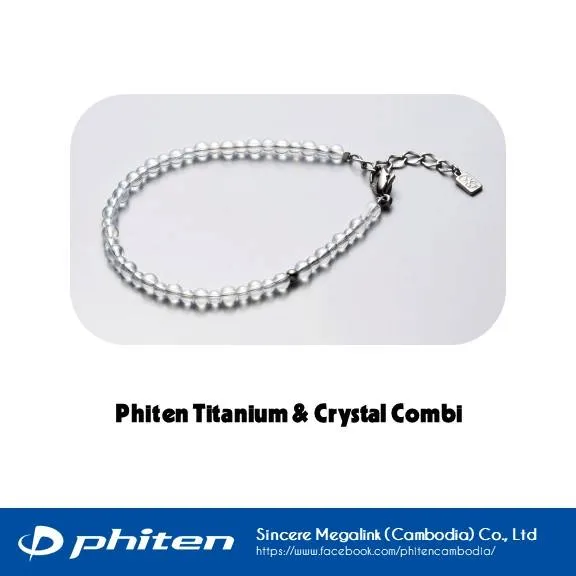 "Carefully selected crystal accessories. This bracelet uses carefully selected crystals, which have been prized for their mysterious power since ancient times, through our own quality checks. The clasp has an adjuster and can be extended up to 3cm. One titanium ball is placed with the Phiten logo engraved on it.