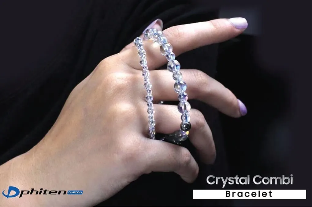 "The crystal beads are carefully selected and exquisite. Crafted by hand to best bring out the mystical power of crystal. Accessories that match your wardrobe. Elegant crystal combined with Titanium beaded bracelet. The lanyard is up to 3cm long. The bracelet has the Phiten logo engraved on the Titanium bead.