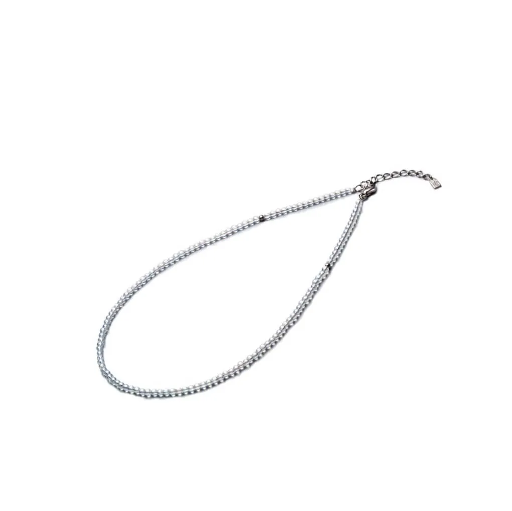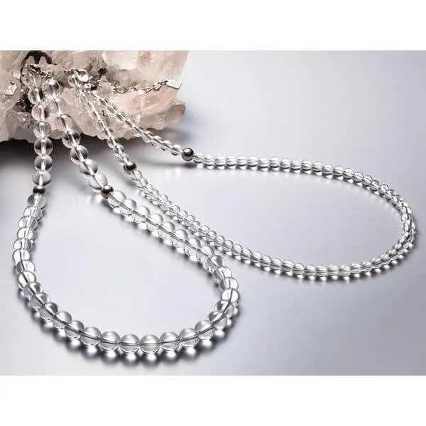 "A crystal accessory that sparkles in seven colors. The surface of the crystal, carefully selected through our own quality checks, is coated with titanium. Finished with an elegant necklace that shines in seven colors. The clasp has an adjuster and can be extended up to 5cm. Materials: Body/crystal, titanium ball, clasp/titanium, adjuster/titanium, plate (end parts)/titanium