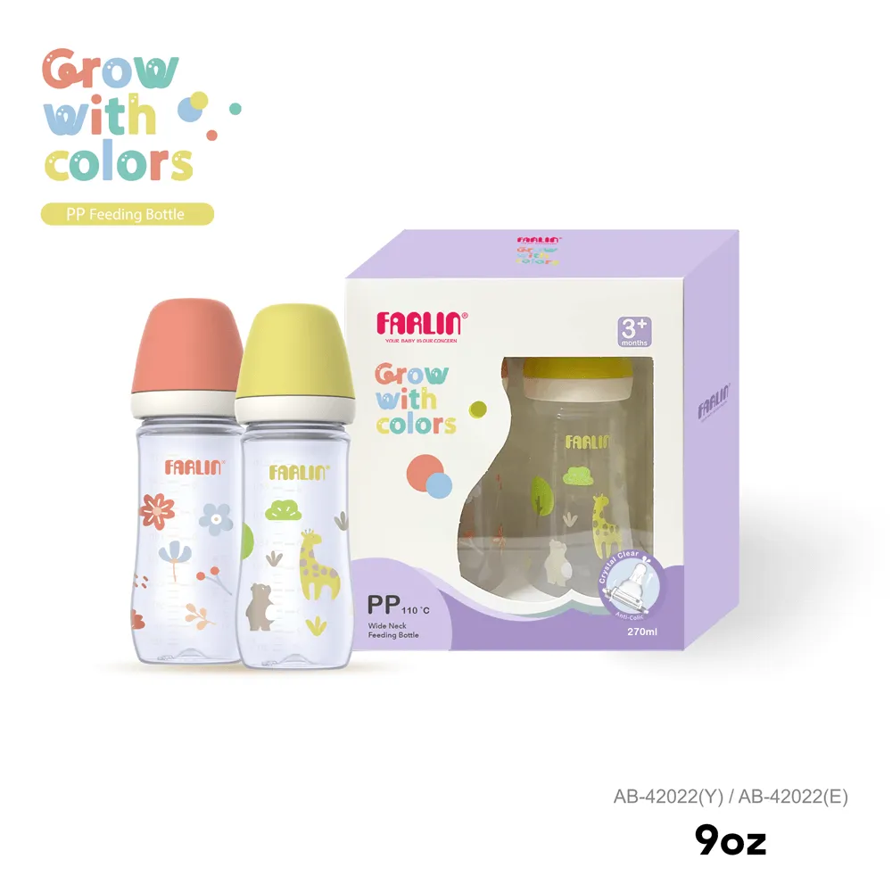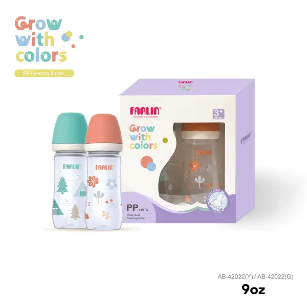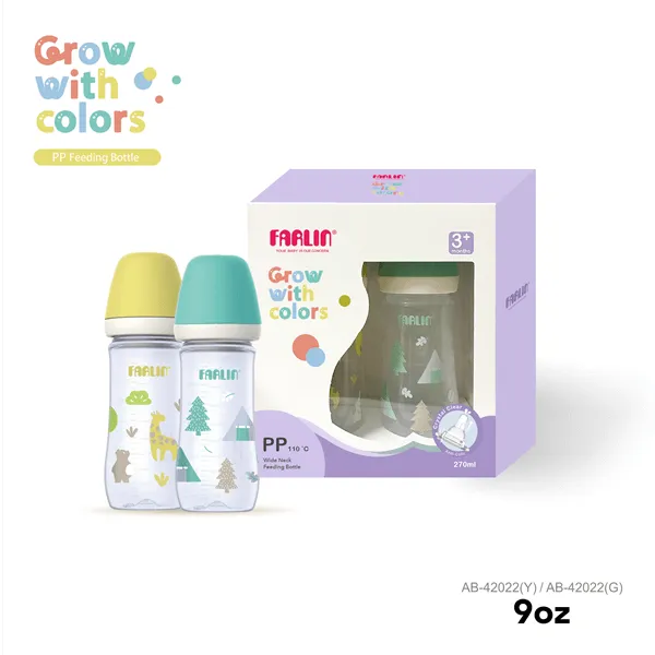 -Wide neck feeding bottle makes it easy to load powder milk and to clean.