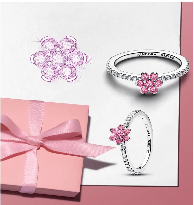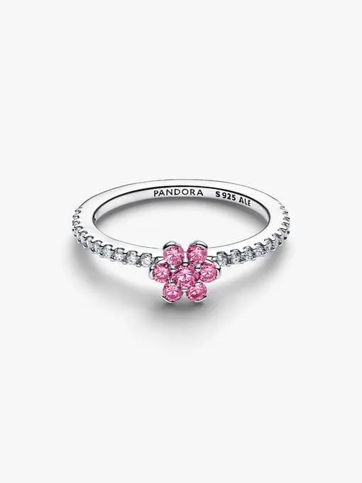 Flourish meets sparkle. Crafted in sterling silver, this ring features a raised flower set with pink stones and a half-pavé band. A sparkling statement that elevates any outfit.