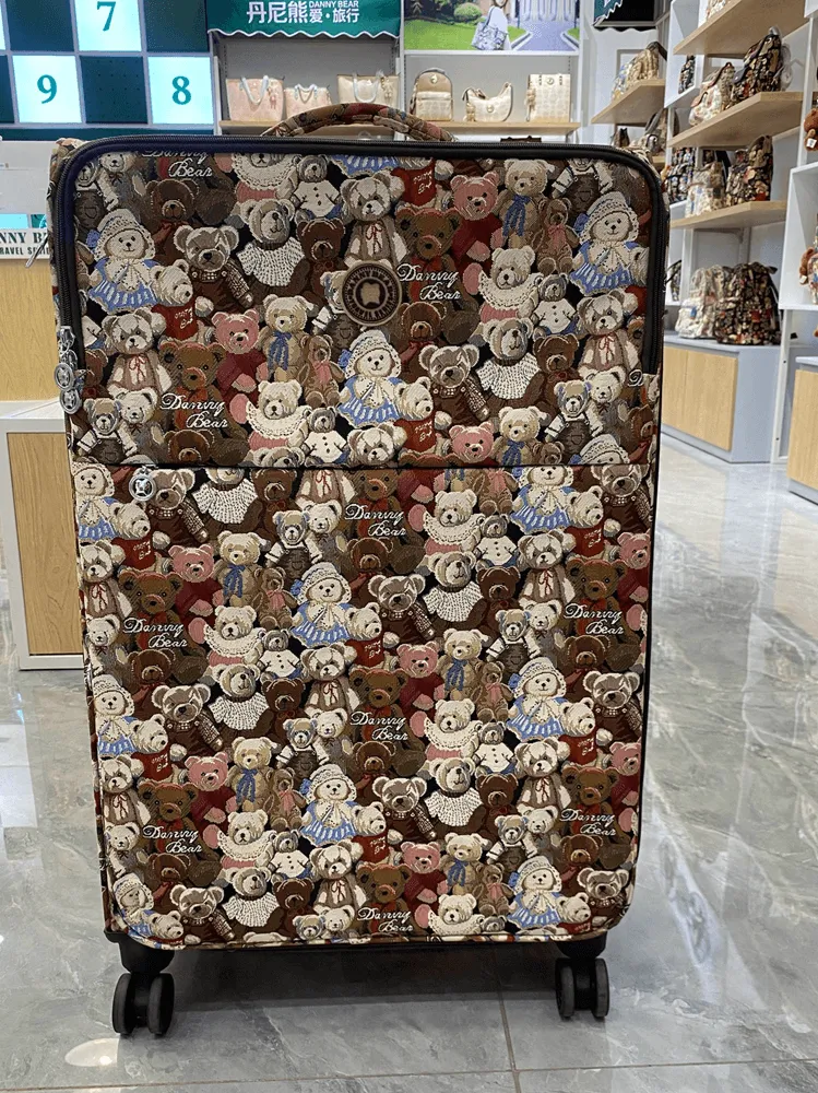 The fabric of the suitcase is made of colorful jacquard fabric, which is woven from seven different threads and five layers. It has a strong sense of three dimensionality, is wear-resistant and scratch resistant, and can feel a silky touch when touched by fingers. The fabric needs to go through 96 processes to ensure that the pattern can achieve a lifelike effect like embroidery.