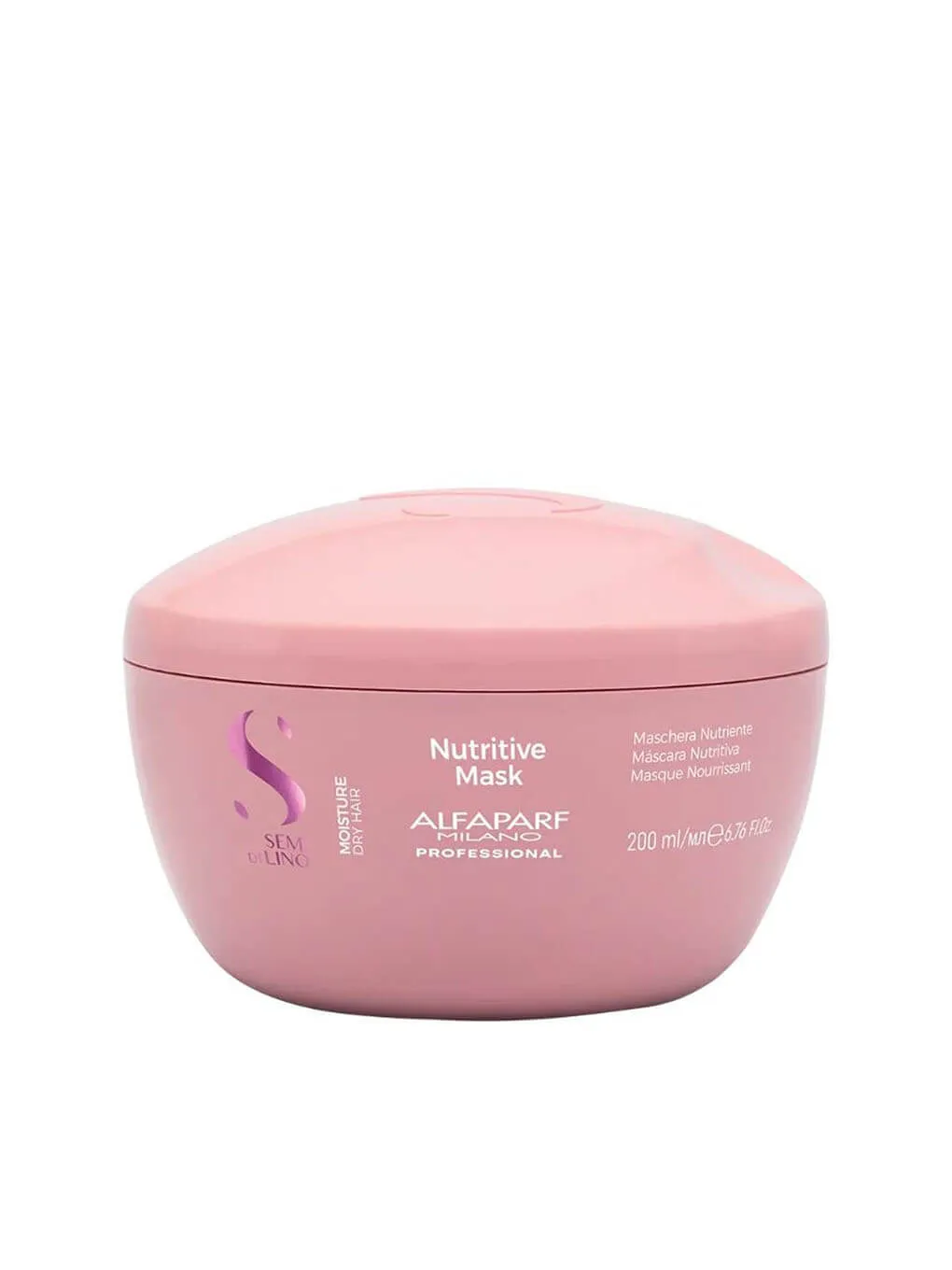 The Alfaparf SDL Moisture Mask 200ml (2017 version - part of the Semi Di Lino line) is a rich, intensive hydrating treatment for dry, parched hair, featuring Nutri-Sugars (from honey) for deep moisture, Shine Fix Complex for 24h shine, Color Fix Complex for color longevity, Urban Defence Pro for anti-pollution, and Linseed Extract for softness, leaving hair healthy, silky, shiny, and manageable without weighing it down, while being sulfate/paraben-free and offering an addictive scent.
