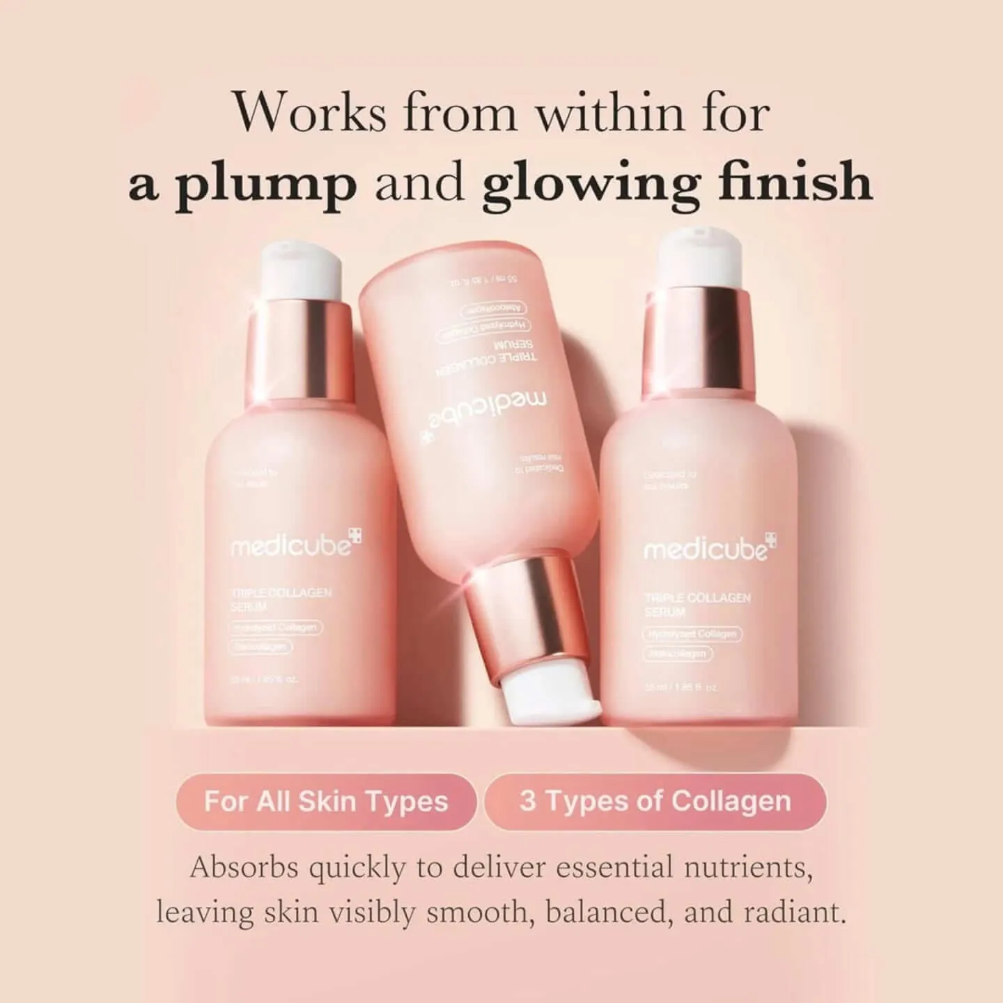 Triple Collagen Serum deeply and rapidly penetrates the skin barrier, delivering essential nutrients to even the deepest layers of the skin, resulting in a plump and vibrant complexio