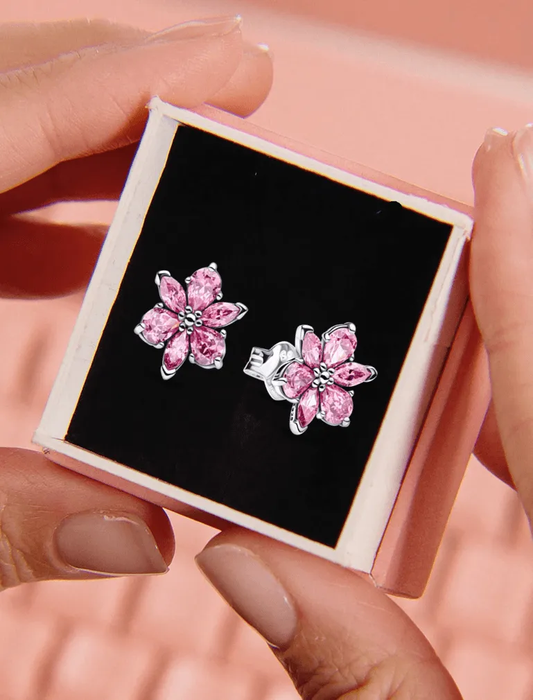 Herbarium Sparkling Pink Flower Stud Earrings