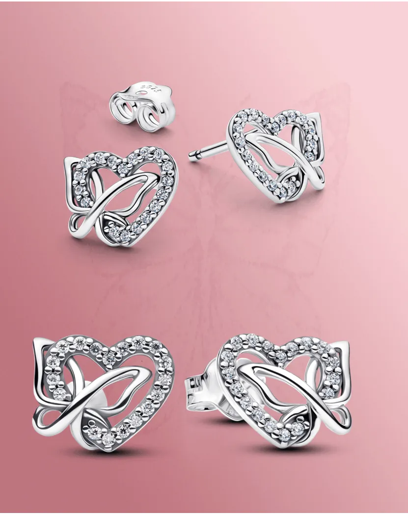 Entwined Heart & Butterfly Stud Earrings