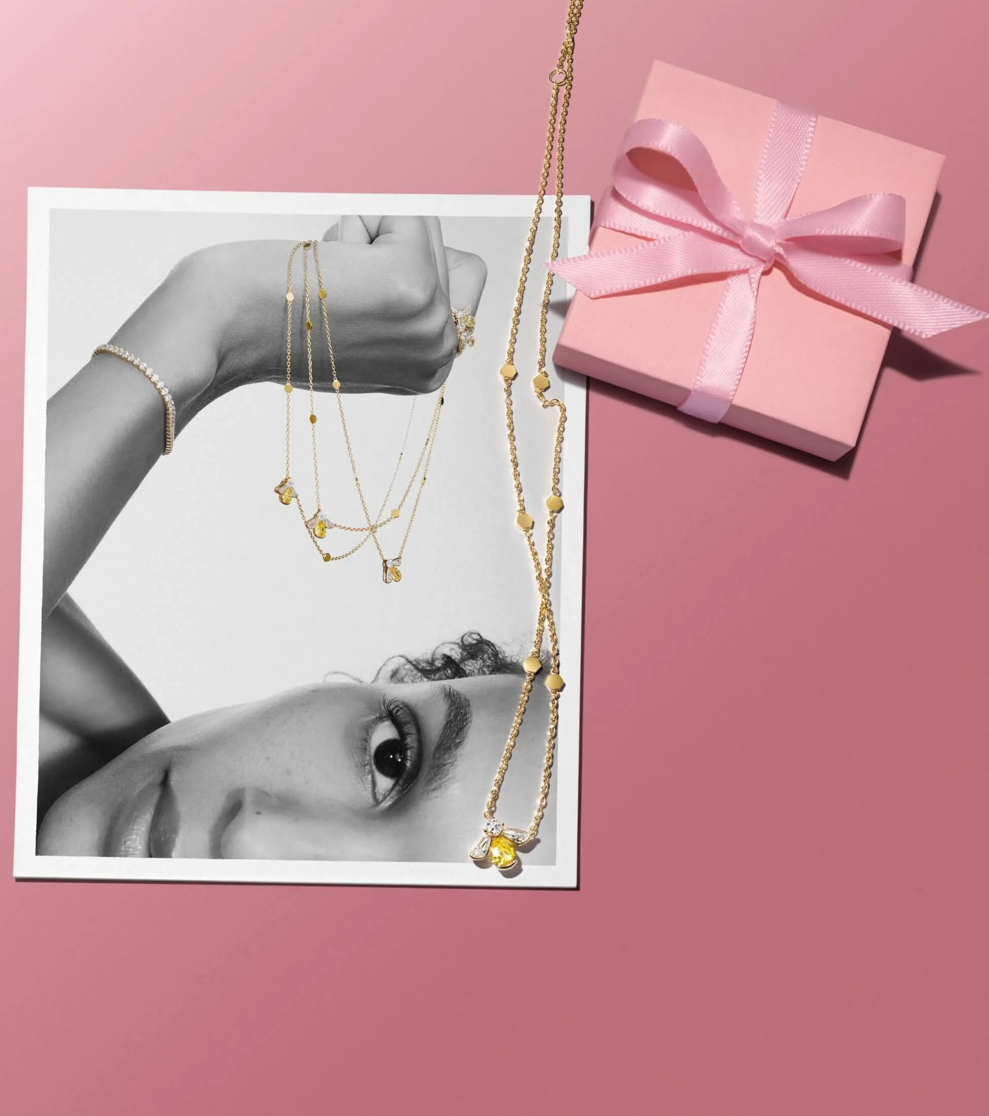 Herbarium Sparkling Pink Flower Pendant Necklace
