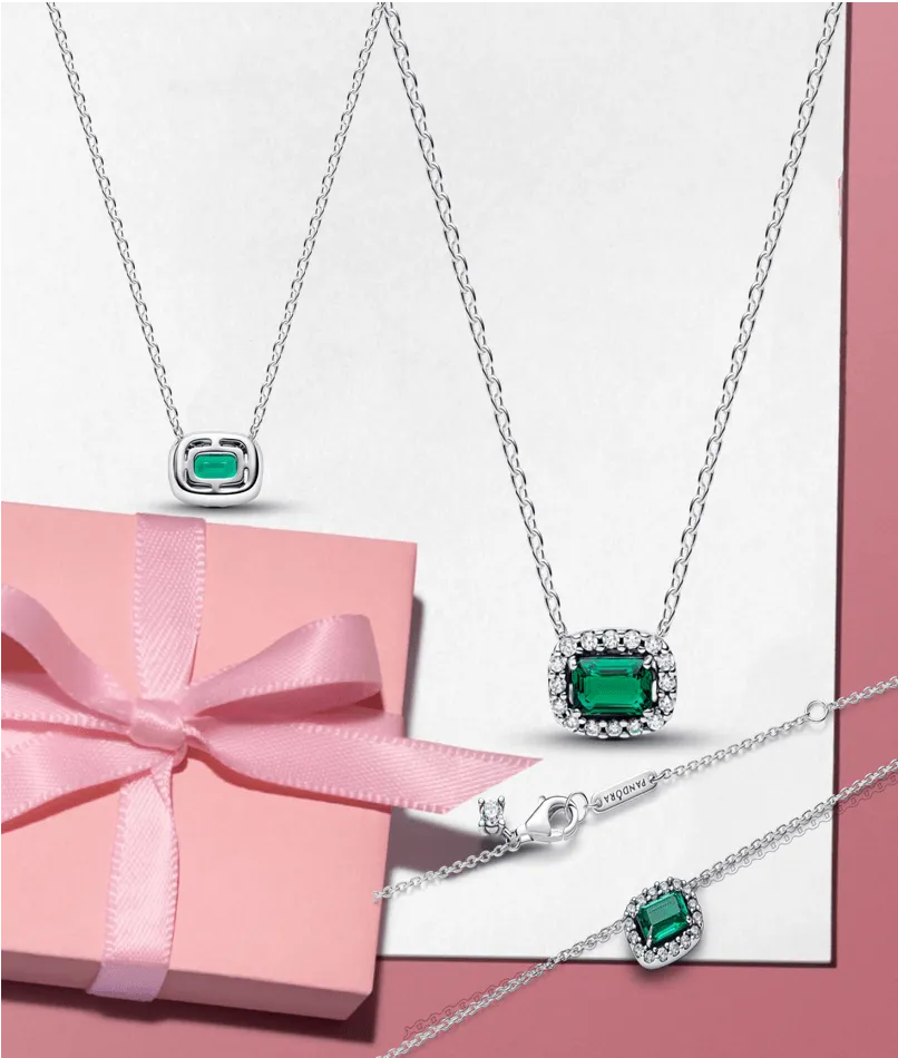 Rectangular Sparkling Green Halo Pendant Necklace