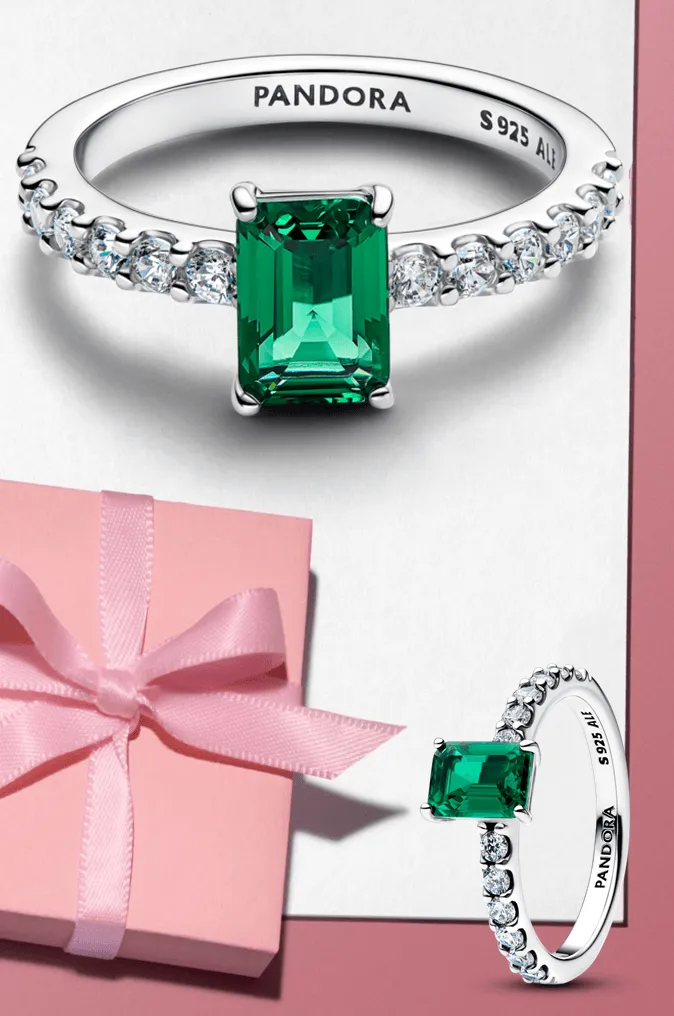 Rectangular Sparkling Green Halo Ring