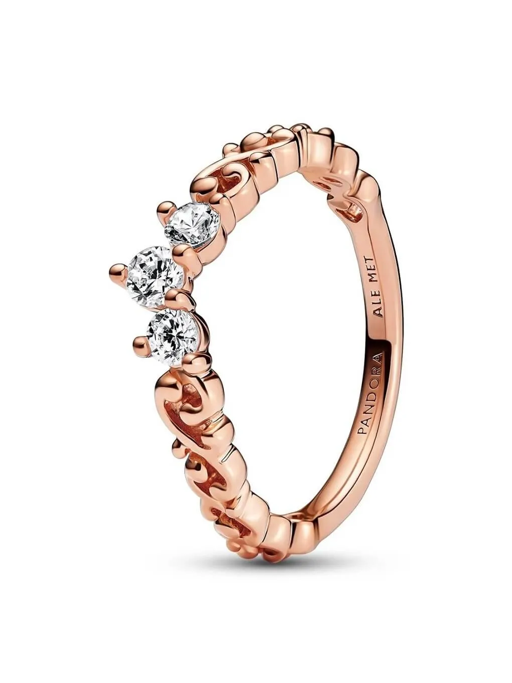 Regal tiara 14k rose gold-plated ring with clear cubic zirconia