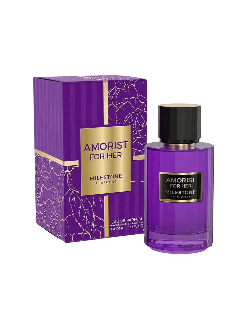 Milestone Amorist For Her 100ml is a warm, spicy, and woody Eau de Parfum. It's a long-lasting fragrance designed to express individuality, offering romantic allure and sophistication for any occasion, perfect for those seeking a distinctive yet versatile scent.