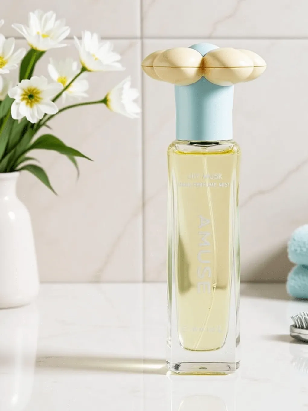 Amuse Hair Perfume Mist 30ml is a lightweight, fragrant hair mist that leaves strands smelling fresh with a soft lily musk scent. It helps tame static and refresh your hair between washes without heaviness, adding a subtle, elegant fragrance wherever you go.