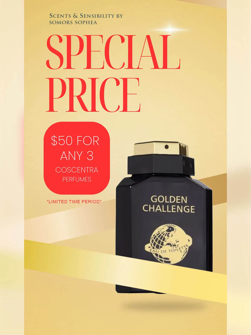 COSCENTRA GOLDEN CHALLENGE EDP 100ML ($50 FOR ANY 3 COSCENTRA PERFUMES)
