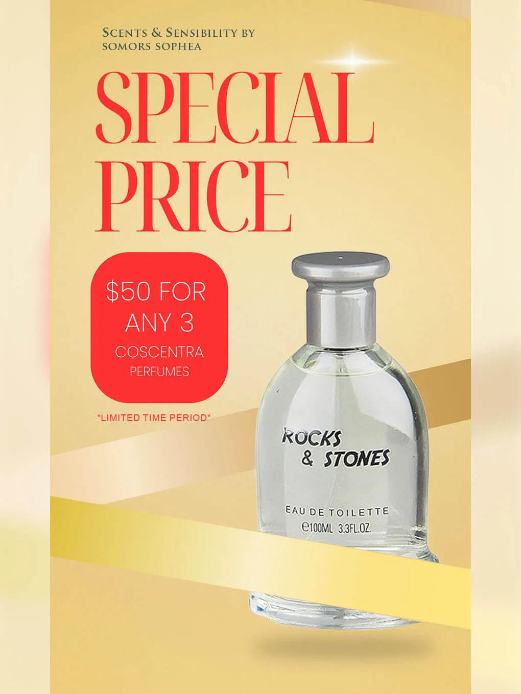 COSCENTRA ROCKS & STONES EDT 100ML ($50 FOR ANY 3 COSCENTRA PERFUMES)